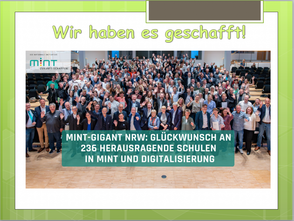 Wir freuen uns über unsere erfolgreiche Bewerbung und sind stolz auf die Auszeichnung als “MINT-freundliche Schule”.