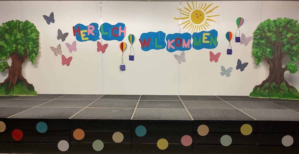 Die 2c stimmte dazu ein fröhliches “Herzlich Willkommen” an.