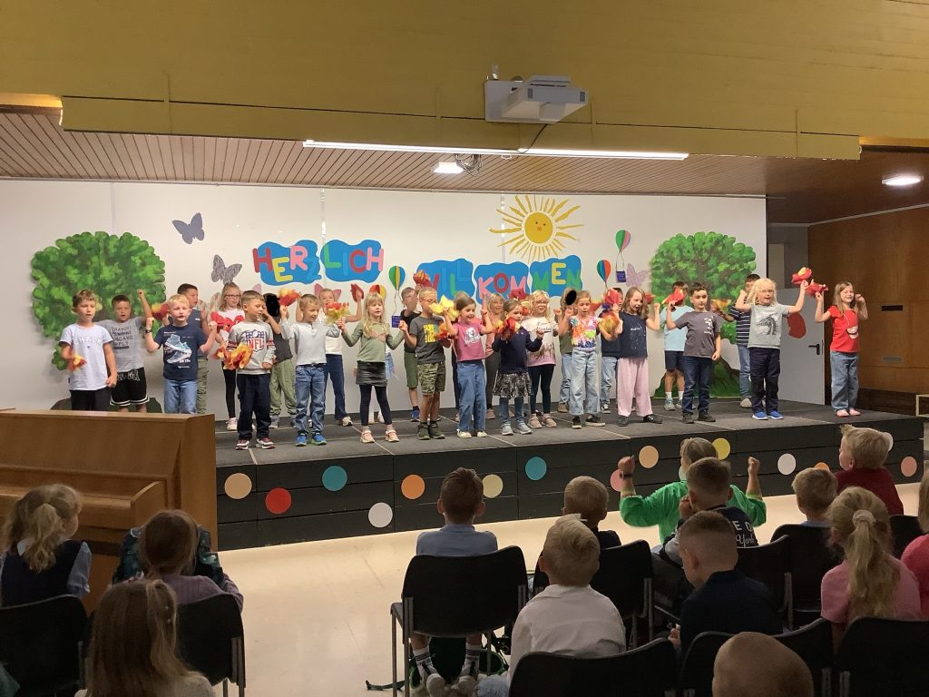 Die 2a gab gute Tipps und Tricks über das Schulleben weiter, bevor die 2b mit ihrem tollen Song zeigte: Unsere Schule ist voller Bewegung und Spaß.