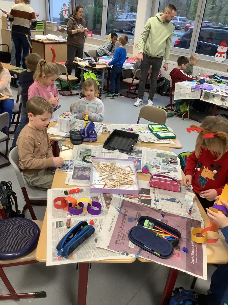 Jedes Jahr wieder vor dem 1. Advent – vier ganze Schulstunden wurde bei Weihnachtsmusik und guter Laune fleißig gebastelt. Das Ergebnis war wieder einmal sehr gelungen. Unsere Schule erstrahlt im weihnachtlichen und farbenfrohen Glanz. Danke an alle Eltern, die in den Klassen unterstützt haben.