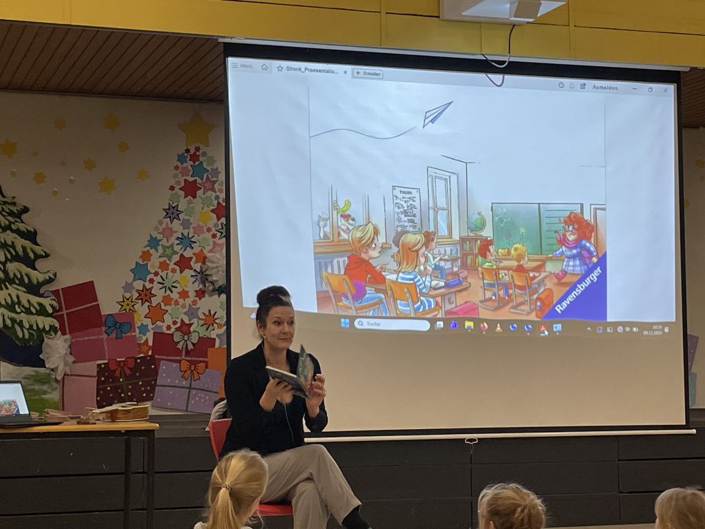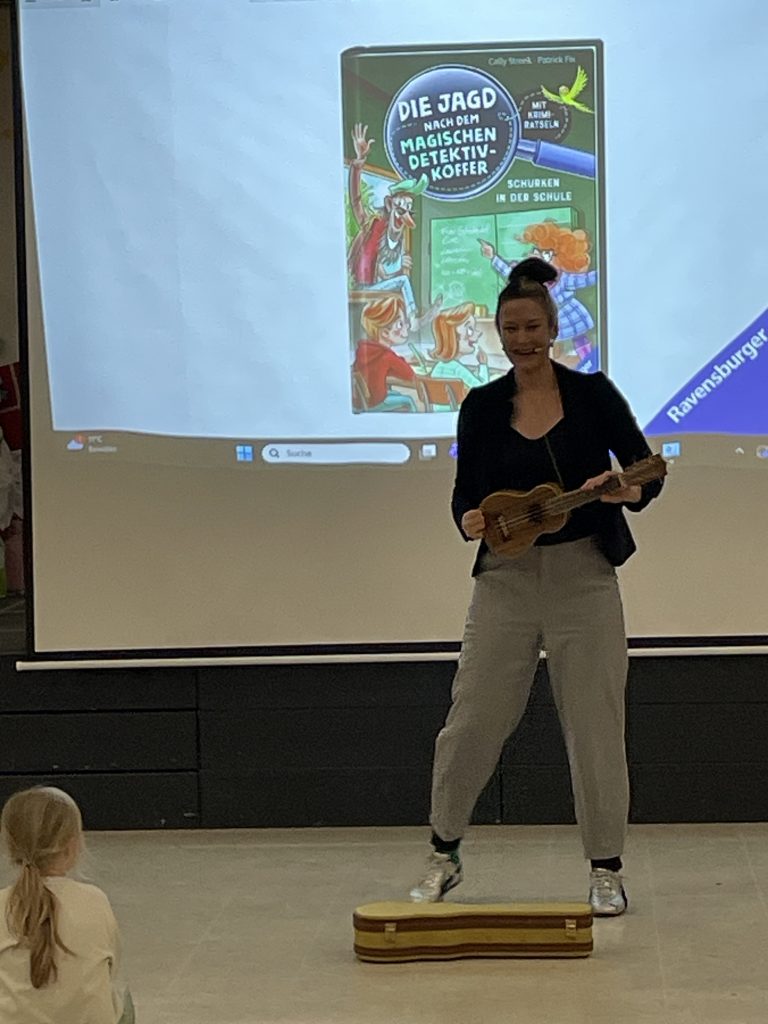 Die Kinder des 2. Jahrgangs haben bei der “Jagd nach dem magischen Detektivkoffer” gerätselt, gesungen und geklatscht und hatten eine tolle Zeit. Am Ende bekamen alle Kinder ein Autogramm und Frau Stronk signierte auch die Bücher, die wir für unsere Schülerbücherei angeschafft haben.