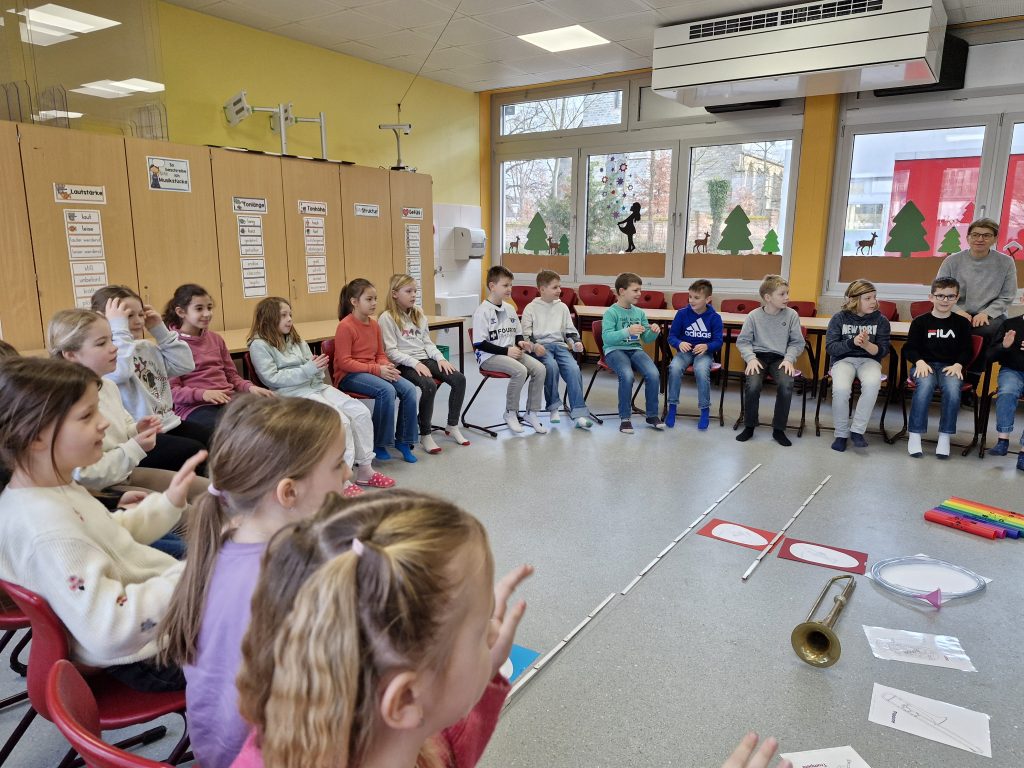 Mit großer Begeisterung hörten die Kinder den spannenden Instrumentenerklärungen zu, lauschten den tollen Klangbeispielen und freuten sich besonders über die bekannten Disney-Melodien.