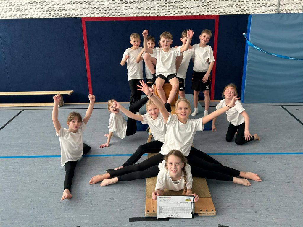 Sechs Mädchen und sechs Jungen aus der dritten und vierten Jahrgangsstufe nahmen in diesem Jahr am NRW YoungStars Turnwettbewerb teil. Mit großem Einsatz, viel Spaß und sichtbarer Freude zeigten die Schülerinnen und Schüler ihr Können an den verschiedenen Turnstationen. Teamgeist, Fairness und Begeisterung standen dabei stets im Vordergrund. Am Ende des Wettbewerbs wurden die Anstrengungen belohnt: Die Mannschaft erreichte einen hervorragenden vierten Platz. Ein tolles Ergebnis, auf das alle Beteiligten sehr stolz sein können.
